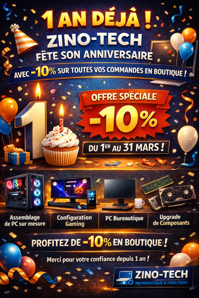 Zino-Tech fête ses 1 an : -10% sur toutes les commandes en boutique du 1er au 31 mars.